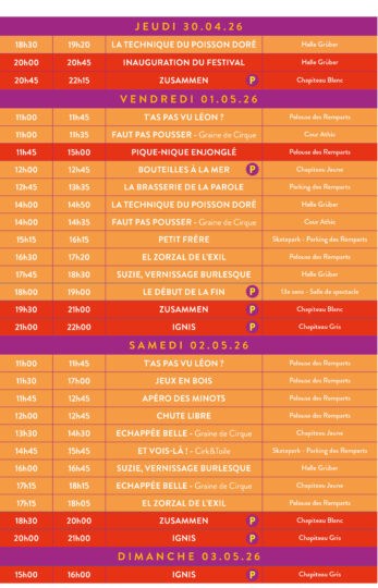 | Pass Chapiteau : Spectacles inclus : ZUSAMMEN & IGNIS | 34 € au lieu de 40 € |