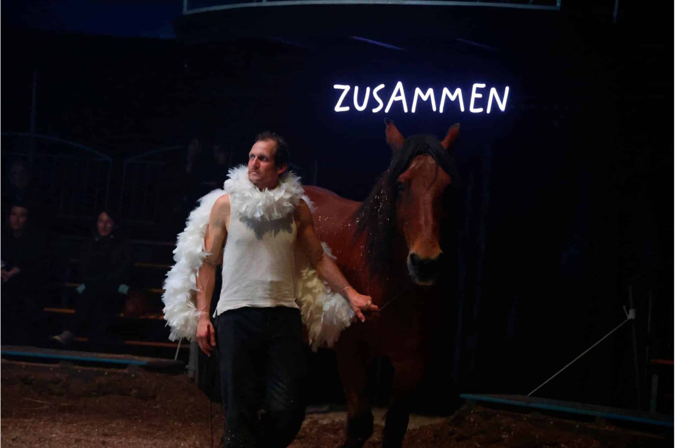 • Avec : Sarah Dreyer (voltige et dressage équestre), Alfred Gilleron (mât chinois, sangles), Vincent Welter (voltige et dressage équestre), Simon Martin-Kantorowicz (équilibre, acrobatie), Perrine Delsalle (dressage équestre) et David Koczij (composition et interprétation musicale)
